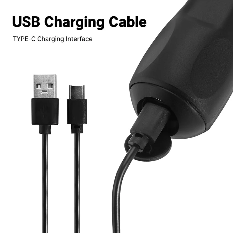 Nota: Para cargar el destornillador, conéctalo a tu computadora o cargador usb mediante el cable incluido.