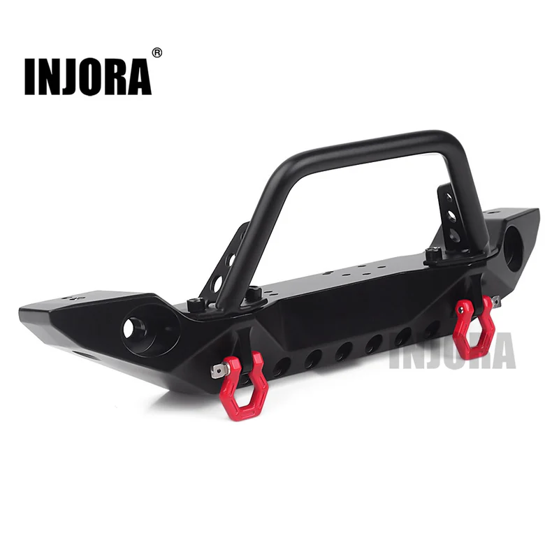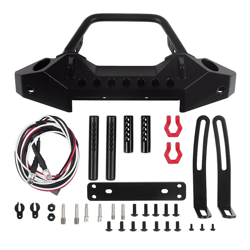 El parachoques delantero INJORA (CRAW18292) está fabricado en metal de alta calidad, ofreciendo una protección robusta para la carrocería de tu crawler RC a escala 1/10. Su diseño incluye luces LED integradas, que mejoran la visibilidad en condiciones de poca luz y aportan un toque realista al vehículo.