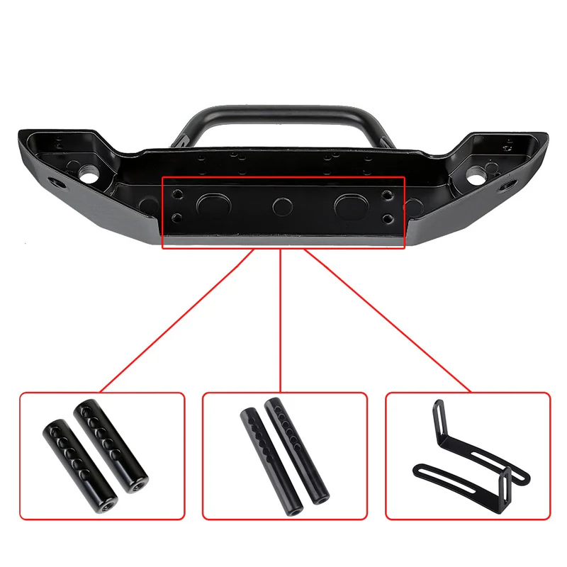 Compatible con modelos como Axial SCX10 II (90046), SCX10 III (AXI03007) y TRAXXAS TRX-4, este parachoques cuenta con tres puntos de montaje, lo que facilita su instalación y ajuste según la configuración del chasis.
